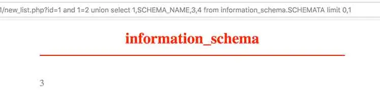 页面返回描述:在原来的标题上位置显示为information_schema,内容的位置显示为3