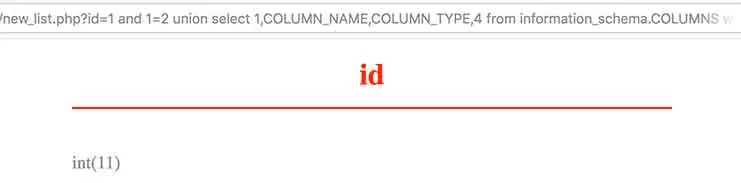 where id=1 and 1=2 union select 1,COLUMN_NAME,COLUMN_TYPE,4 from