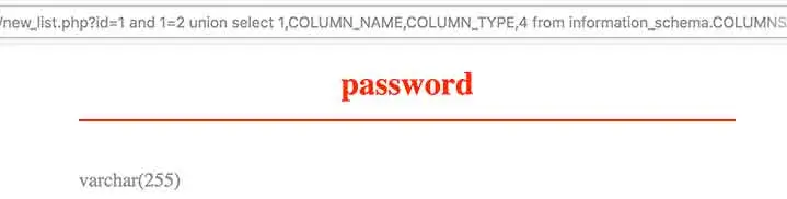 页面返回描述:在原来的标题上位置显示为password,内容的位置显示为varchar(255)