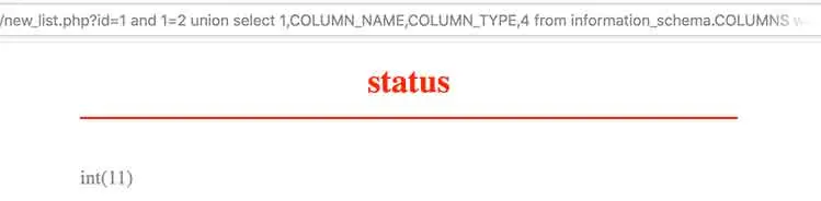 页面返回描述:在原来的标题上位置显示为status,内容的位置显示为int(11)