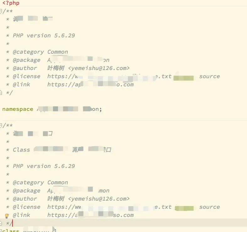 主要包含以上内容块:文件说明、PHP 版本号、还有就是按顺序的这五要素:(category, package, author, license, link),而且这五要素排版要对齐哦,一般人我不告诉哦~~~