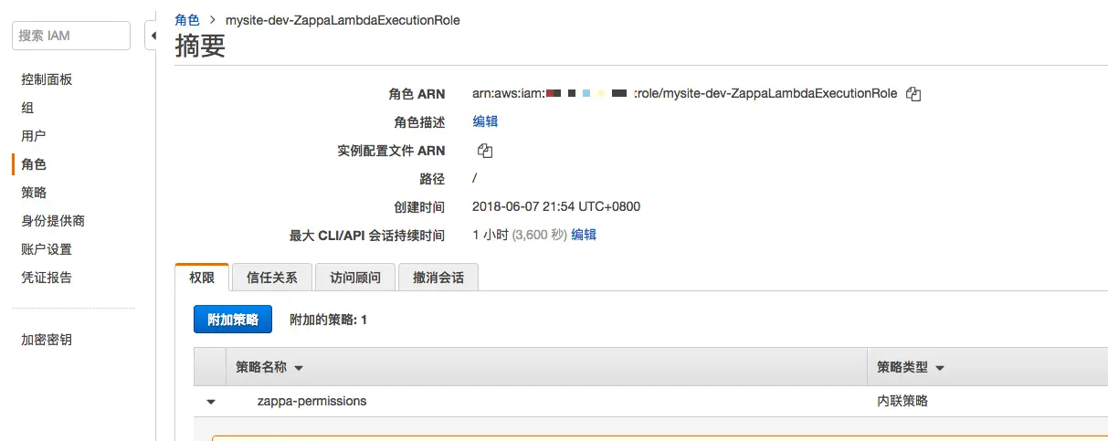 zappa 会帮助你创建 lambda 程序相关的角色, 在这个阶段, 为了不要那么操心, 先给你本地的 IAM 设置成 "Administrators" 组. 生产环境不要这么做