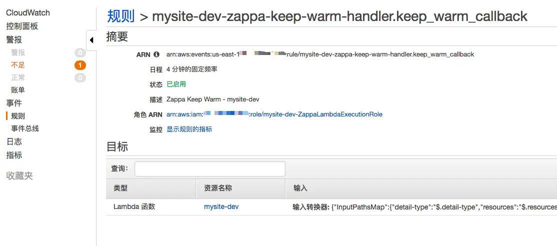 回到 lambda 上可以看到, zappa 自动生成以下的组件
