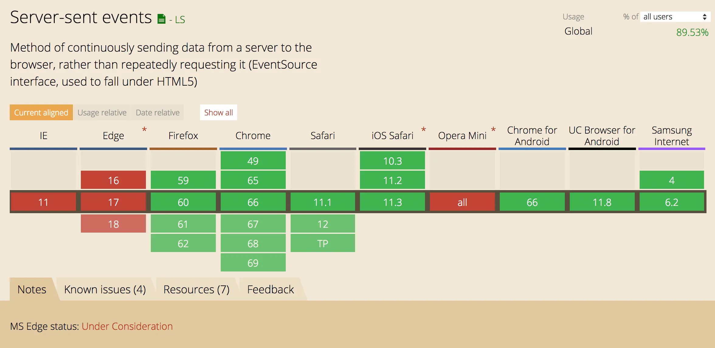 此外,我们还可以考虑结合HTTP/2的优势来使用SSE。然而,一个可能不太好的消息是,IE/Edge并不兼容。