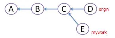 在远程分支origin的基础上创建一个名为"mywork"的分支并提交了,同时有其他人在"origin"上做了一些修改并提交了。