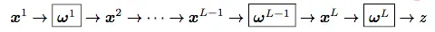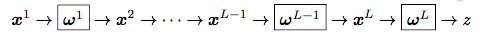 将卷积等操作层作为“基本单元”依次“搭”在原始数据(公式1.1中的x1)上,逐层“堆砌”,以损失函数的计算(公式1.1中的 z )作为过程结束,其中每层数据形式是一个三维张量(tensor)。具体地,在计算机视觉应用中,卷积神经网络的数据层通常是RGB颜色空间的图像:H行,W列,3个通道(分别为R,G,B),在此记作x1。x1经过第一层操作可得 x2 .对应第一层操作中的参数记为 ω1 ;x2 作为第二层操作层 ω2 的输入,可得 x3 .......直到第L-1层,此时网络输出为 xL。