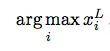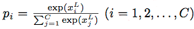 预测过程实际就是一次网络的前馈运算:将测试集图像作为网络 输入x1 送进网络,之后经过第一层操作 ω1 可得 x2,依此下去⋯⋯直至输出xL ∈ RC。上一节提到,xL 是与真实标记同维度的向量。在利用交叉墒损失函 数训练后得到的网络中,xL 的每一维可表示 x1 分别隶属 C 个类别的后验概率。如此,可通过下式得到输入图像 x1 对应的预测标记如下公式1.3: