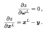 下面我们来看误差反向传播的详细过程,假设某批处理前馈后得到 n 个样本上的误差为 z,且最后一层 L 为 l2 损失函数,则易得公式1.4、1.5: