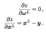 - 关于输入 xi 的导数则用于误差向前层的反向传播。可将其视作最终 ∂x 误差从最后一层传递至第 i 层的误差信号。