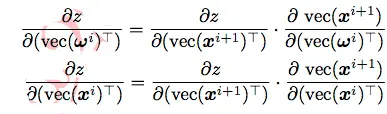不难发现,实际上每层操作都对应了两部分导数:一部分是误差关于第 i 层参数ωi 的导数