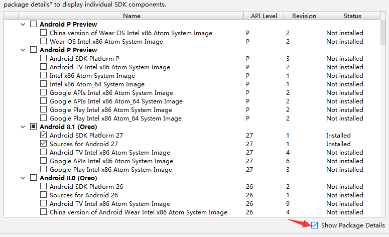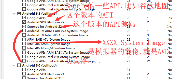 所以呢这个界面必选的就一个, Android SDK Platform (假设不用模拟器仿真的话),,我用自己的手机,所以就不下载....