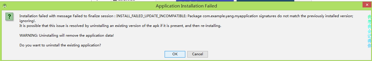 这个.....我一开始建了一个工程,,然后安装到手机了,,然后我删除了工程,然后建了一模一样的,,,,告诉我已经有啦..是不是卸载以前的重新安装.......我就 OK 大家的应该不会这种情况
