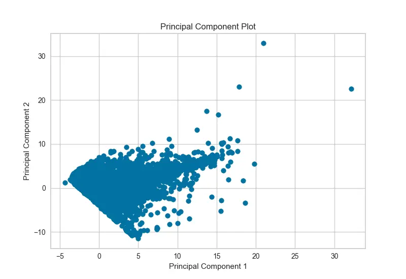 from yellowbrick.features.pca import PCADecompositionvisualizer = PCADecomposition(scale=True, center=False, color=y)visualizer.fit_transform(X,y)visualizer.poof()上述代码直接实现了两维的PCA可视化: