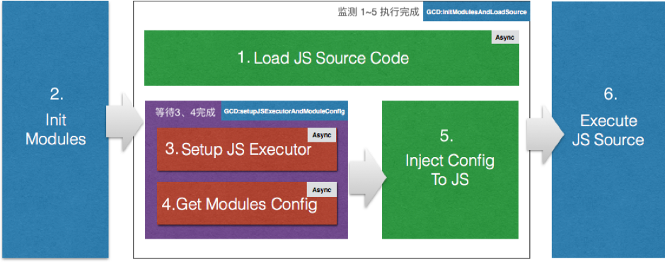 - 1.在启动阶段,初始化JS引擎,生成Native端模块配置表存于两端,其中模块配置是同步取得,而各模块的方法配置在该方法被真正调用时懒加载。