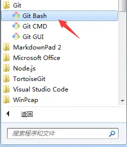 安装完成后,在开始菜单里找到“Git”->“Git Bash”,打开如下图