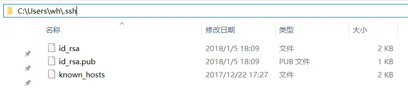 在指定的保存路径下会生成2个名为id_rsa和id_rsa.pub的文件 (上面确认的保存地址)