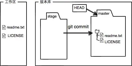 两次命令git add,把readme.txt和LICENSE都添加后,暂存区就有了这两个文件