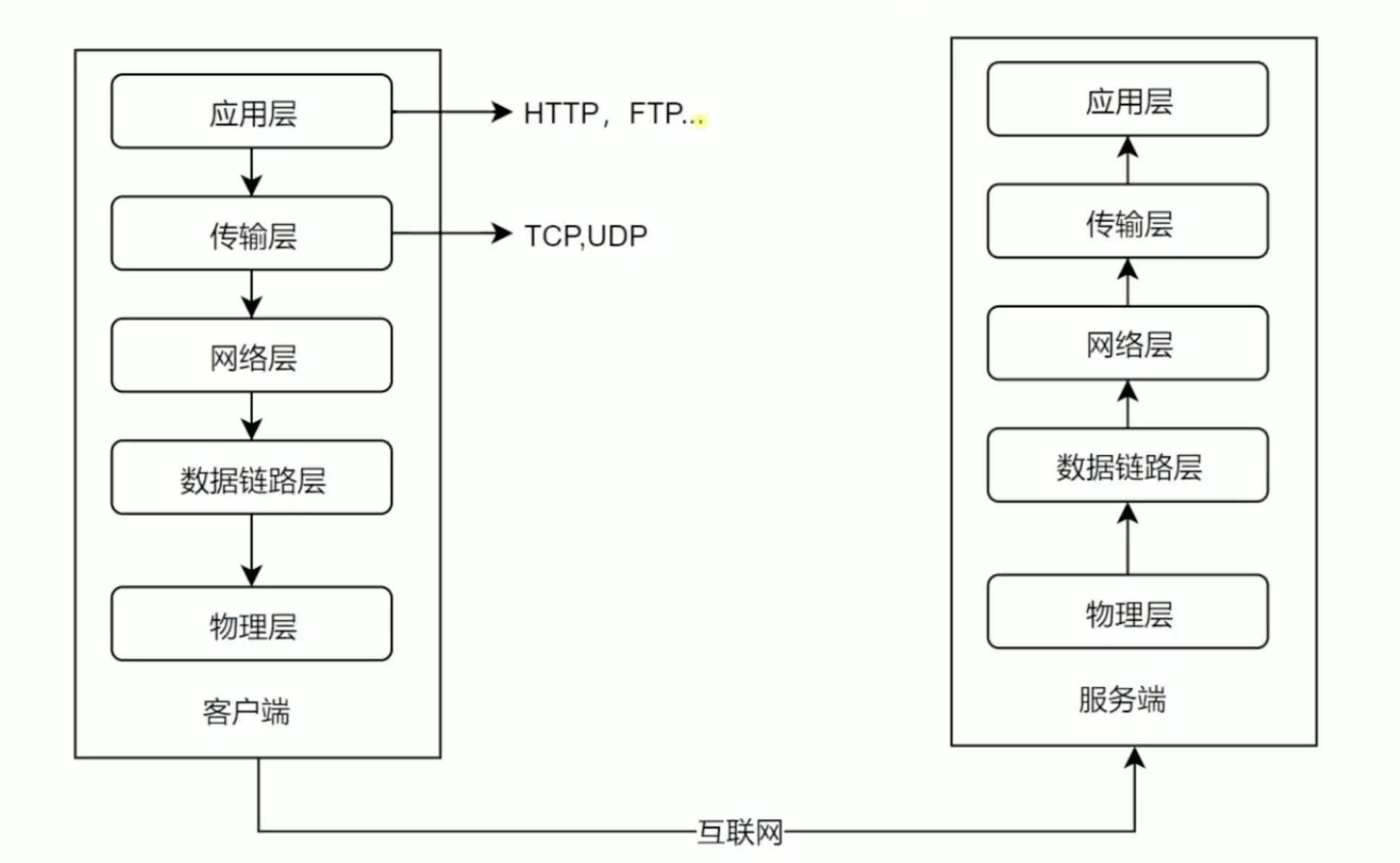 这个五层模型中,分为应用层、传输层、网络层、数据链路层、物理层,每一个服务器上都会有这样的层级关系存在来维护整个网络数据传输的过程。