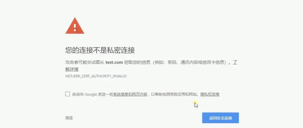 提示非安全连接是因为chrome浏览器认为的安全证书是要通过有权威的机构去签发的,这种机构会先认证域名所有者与服务是否属于你,验证通过才会签发证书。