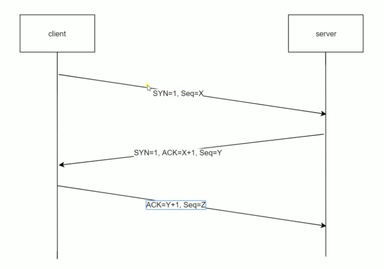 (三) 这时候客户端再去发送 ACK=Y+1,Seq=Z。