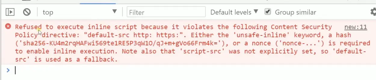 加入限制之后浏览器就会阻止js脚本的加载并报错