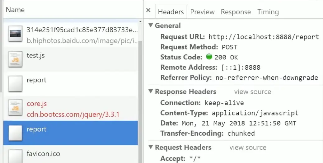 如果我们只想对限制进行错误报告而不阻止资源加载的话,可以这么写