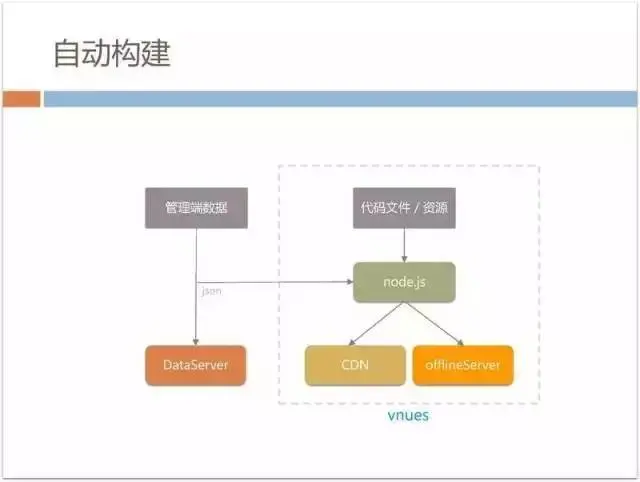 如何快速把四个版本的数据全部统一?我们针对静态直出这种模式做了小型的自动构建系统,产品经理在管理端配置数据要同步dataServer时,我们会立刻启动我们内部称为vnues的构建系统。