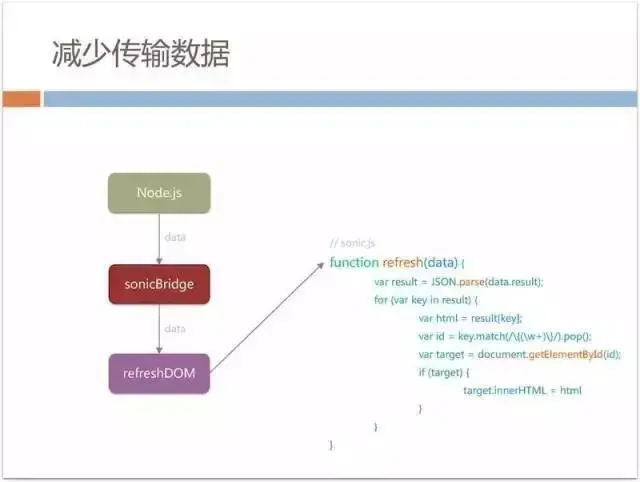 我们改变了Node.js组HTML的协议,当sonicBridge在第二次请求数据的时候,Node.js服务器并不会返回整个HTML给sonicBridge,而是返回给我们称为data数据的部分。