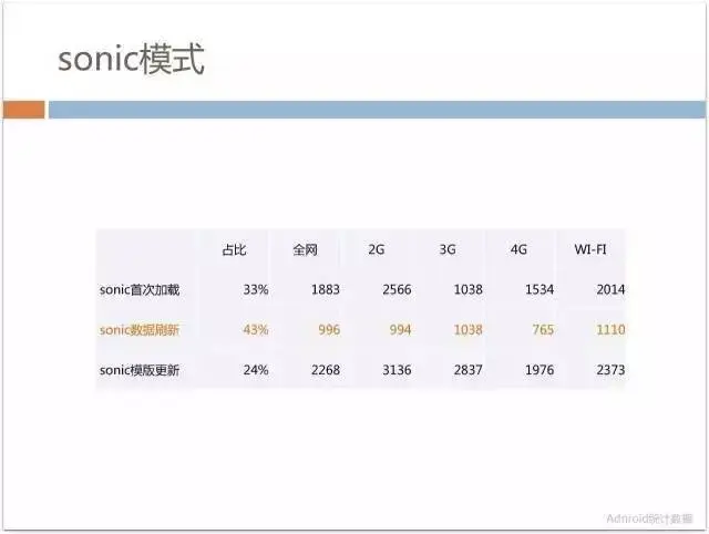 这里没有提到模板更新的场景,模板更新是指我们抽取出来的template在我们server是有可能动态变化的,这个时候的加载流程和我们前面提到的就不太一样了,当template有变化时,还是按照原来走HTML reload页面的流程,这里的耗时相对偏高,但我们统计发现大部分用户还是落在数据刷新也就是二次打开的状态。