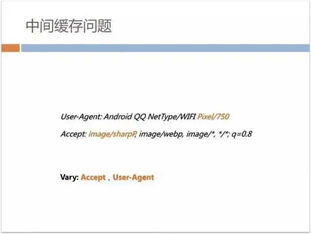 这个问题是我们整体架构上没有去全盘review而踩中的坑,HTTP有个标准的约定可以解决这种缓存问题。在CDN分发内容的时候,通过Vary字段指定缓存的时候要去参考Accept和User-Agent里的字段,我们把这个Vary加上之后问题基本解决了。