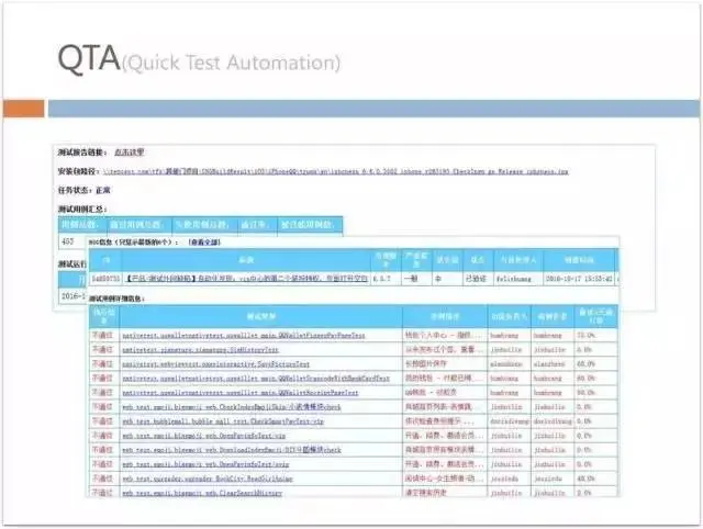 这是我们内部称作快速自动化的工具。我们会把前端所有的测试用例集写成自动化测试,然后每天都会把全网所有页面所有的测试用例集跑一遍,检查功能是否正常。