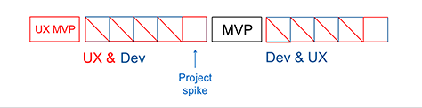 如图7所示,我们首先创造出最简可行的UX产品(Minimum Viable Product-简称MVP),然后开发出真正的MVP。一旦我们了解这个概念是可行的,我们就开始进行Scrum开发的流程。