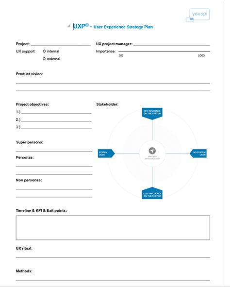准备好并计划你将要做的!这项实践真的是非常关键性的一步。在Youspi (一间奥地利UX设计顾问与培训公司),为了方便定义我们的工作方法,我们每回都从制定“UX策略计画”展开,其中计划内容包括下列几项: