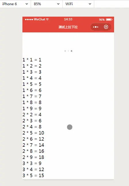 在微信开发者工具跑起来没什么问题,在真机跑一下,三个点下来以后竟然不上去了,很尴尬,最后在参考文章第二篇的评论里一位网友的回答解决了这个问题,手动让三个点弹回去,wx.stopPullDownRefresh(),小程序API里有,可以点这里自行看一下