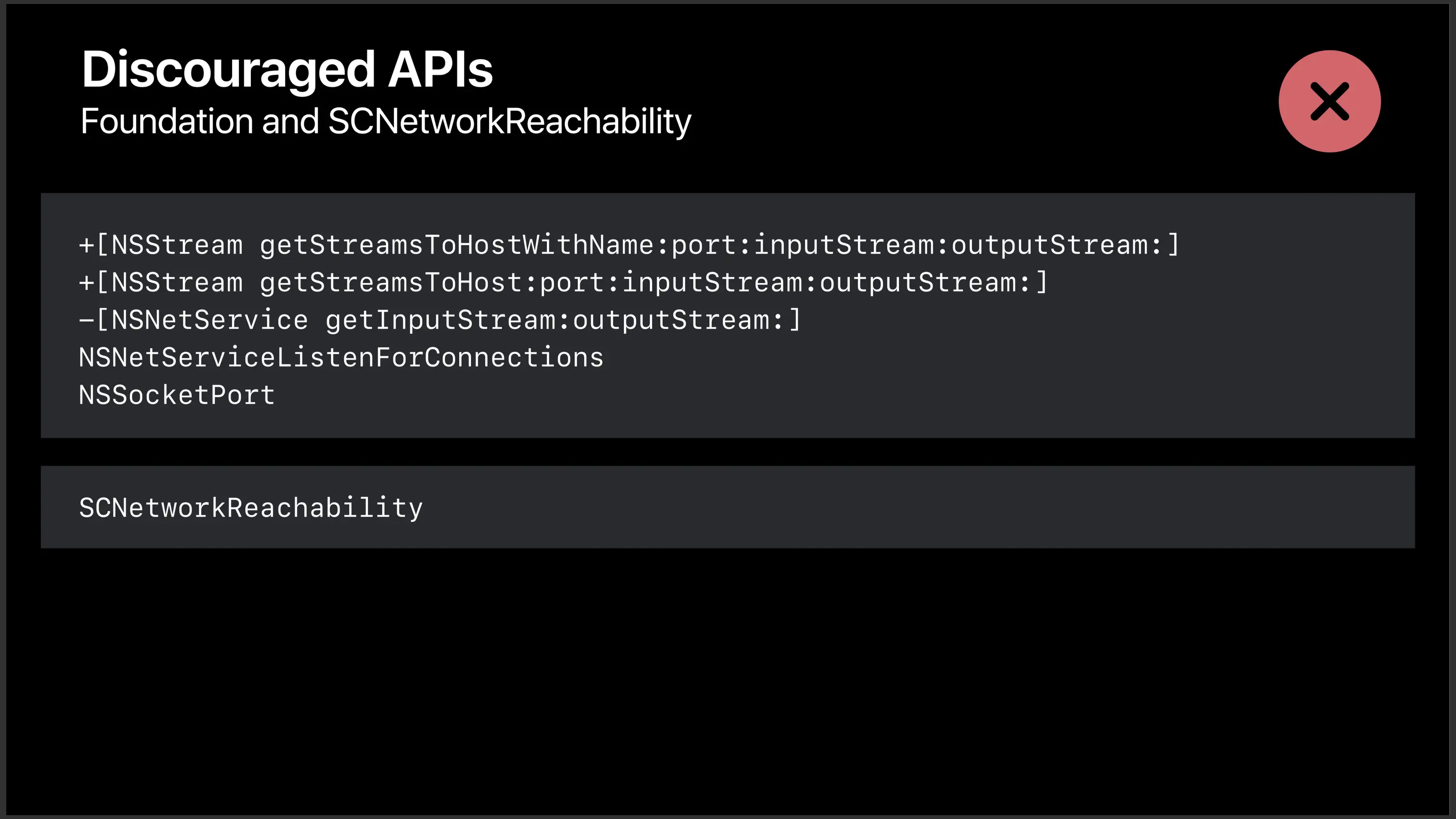 在未来,Apple 希望你能够将原来的 Socket API 全部替换为全新的 Network.framework。(iOS 又有人要了!)
