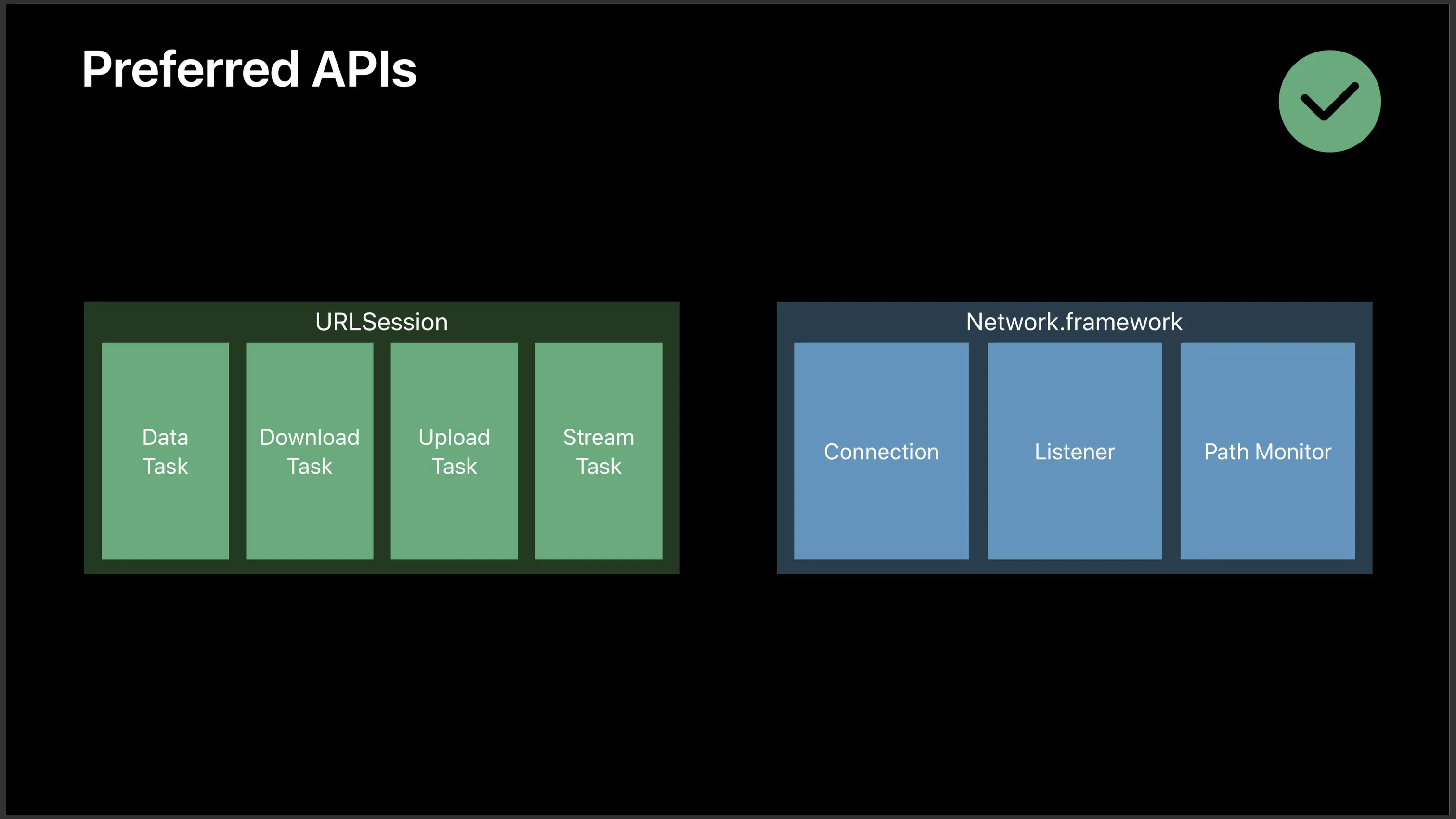 当前,URLSession 底层就是使用 Network.framework 完成基础连接的。特地查了一下,相关私有 API 是从 iOS 9 开始存在的。