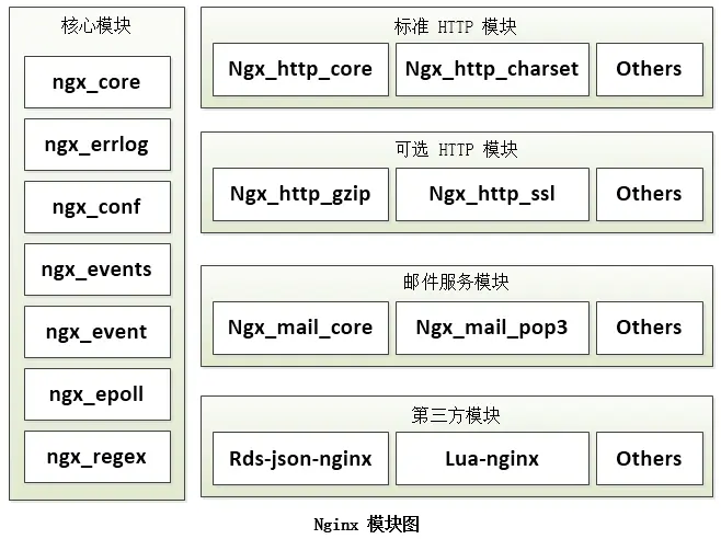 核心模块是 Nginx 服务器正常运行必不可少的模块,提供错误日志记录、配置文件解析、事件驱动机制、进程管理等核心功能。