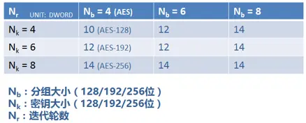 - 分组加密算法:支持128位分组大小,128/192/256位密钥