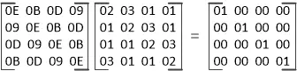 - 此处的矩阵乘法与一般意义上矩阵的乘法有所不同,各个值在相加时使用的是模28加法(异或运算)。