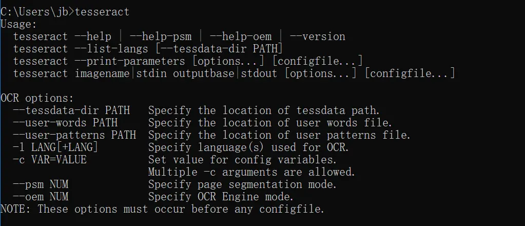 安装完成后,便可以调用tesseract命令;