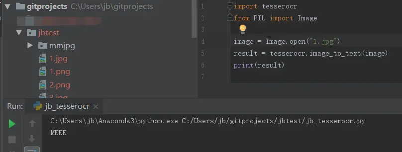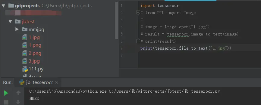 OK,windows下的tesserocr跟tesseract的环境已经安装好了;