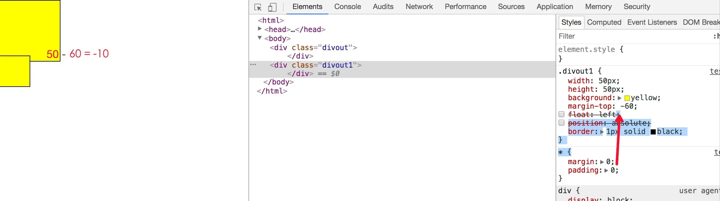 b、另外,任意元素的父元素不参与margin的重叠,或者说只有父元素的margin-bottom是参与计算的。如果元素的border-top非零,那么元素的border-top边界位置和原来一样。