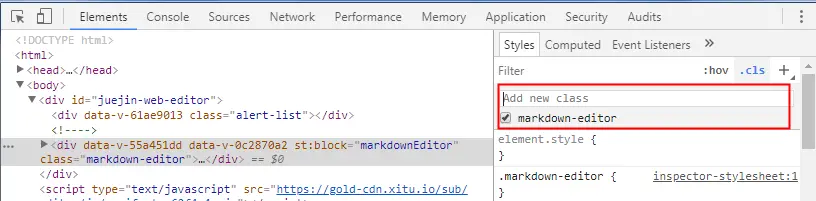 这边想到了之前直接调试加类名改变样式的情况,都是在左边的DOM节点那边直接编辑、删除,现在想想太蠢了。