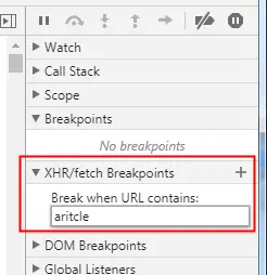 XHR断点: 请求包含某个字符串时,会在XHR请求的地方断点。