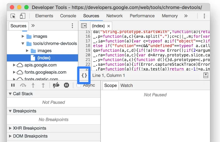 let result = a + b; // DevTools pauses on this line.