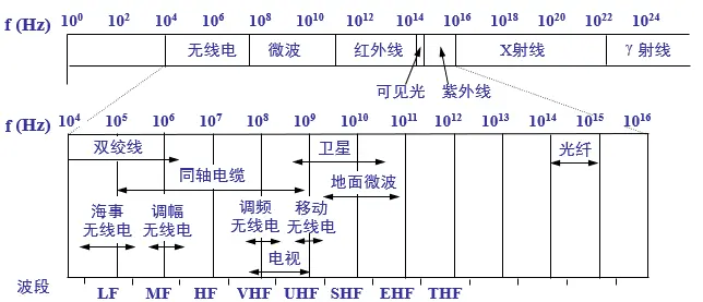 电信领域使用的电磁波频谱:
