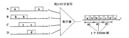 统计十分复用很好的解决了这个问题,将每个不为空的数据做上标记,当不为空时将其放入统计时分复用帧中,如果为空,则跳过,到达分用器,通过分用器和不同的标记将其分发到不同的输出端。