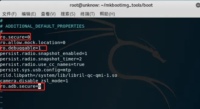 ro.secure=0开启root权限,默认是1