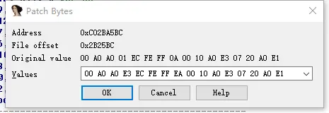 直接使用Edit -> Patch program -> Change byte