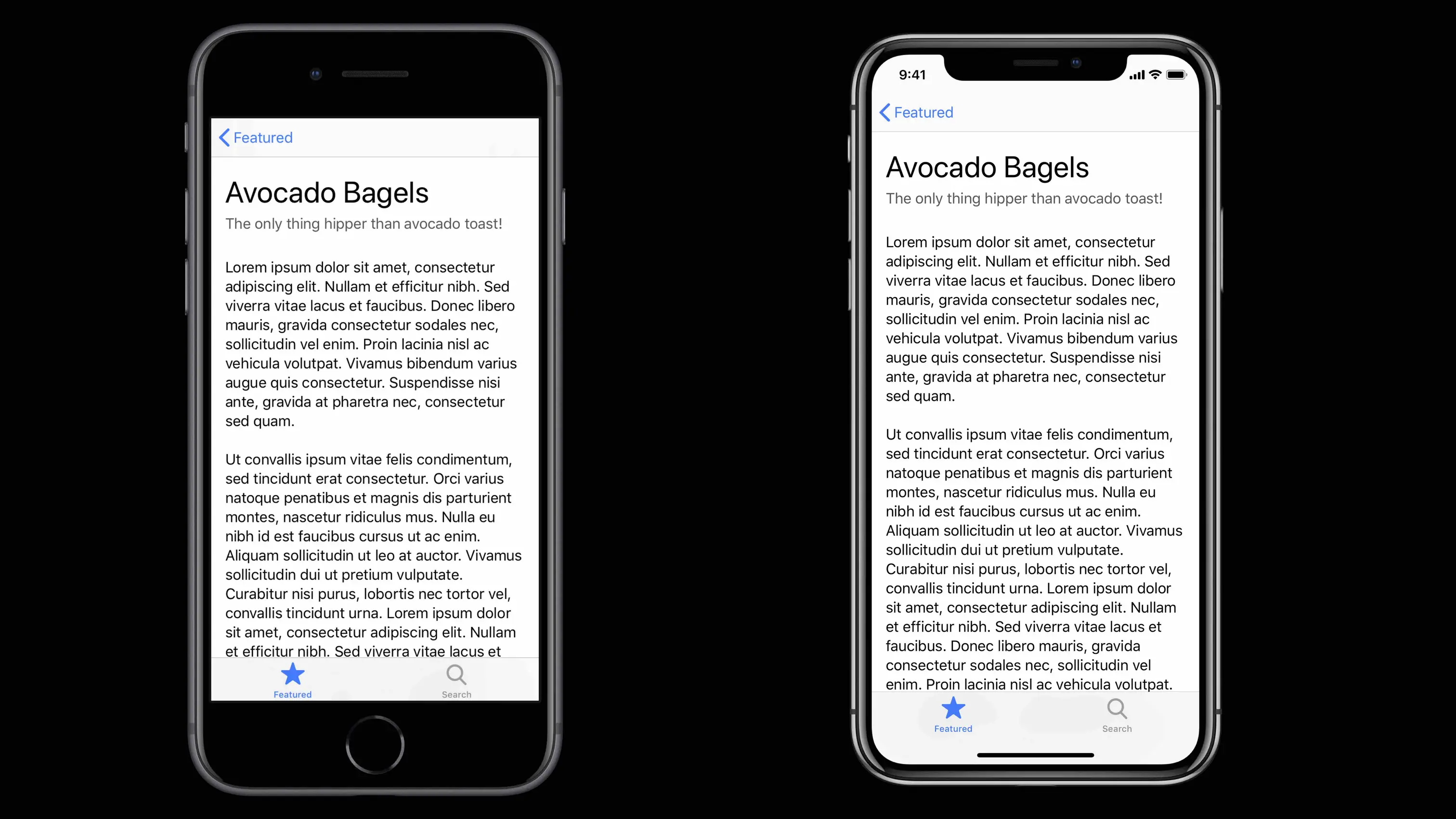 iOS9 就提出了 readableContentGuide 这一概念,主要是用于一些阅读类应用,在可视宽度较大的时候,希望能够通过布局将阅读区域限定在一定范围,已缓解用户阅读的过程中追踪内容移动头部所造成的疲劳。readableContentGuide 的间距大小会随着字体大小、设备不同等因素而发生改变。现这一属性同样兼容 safeAreaInsets。同样的 UITableView 的 cellLayoutMarginsFollowreadableWidth 属性也同样兼容 safeAreaInsets,如 图18、19、20 所示。